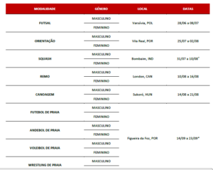 “Ao todo, Portugal estará representado em nove modalidades, estabelecendo um novo recorde de participação internacional ao nível das seleções nacionais universitárias em toda a história da FADU Portugal. A participação portuguesa arranca no Campeonato Mundial Universitário de Futsal, que decorre de 28 de junho a 8 de julho, em Varsóvia (Polónia), com a presença da seleção nacional universitária Mmasculina e da seleção nacional universitária feminina, esta última na condição de vice-campeã mundial em título”, destaca a FADU Portugal.