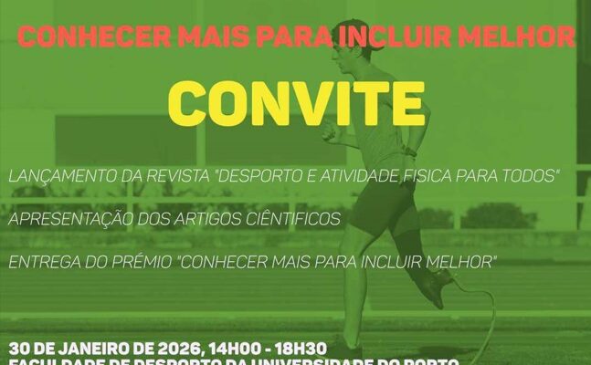 O X Seminário da FPDD – “Conhecer Mais para Incluir Melhor”, organizados pela Fundação do Desporto e pela Federação Portuguesa de Desporto para Pessoas com Deficiência (FPDD), terá lugar no próximo dia 30 de janeiro de 2026, na Faculdade de Desporto da Universidade do Porto (FADEUP), assinalando os 10 anos de publicação da Revista da […]